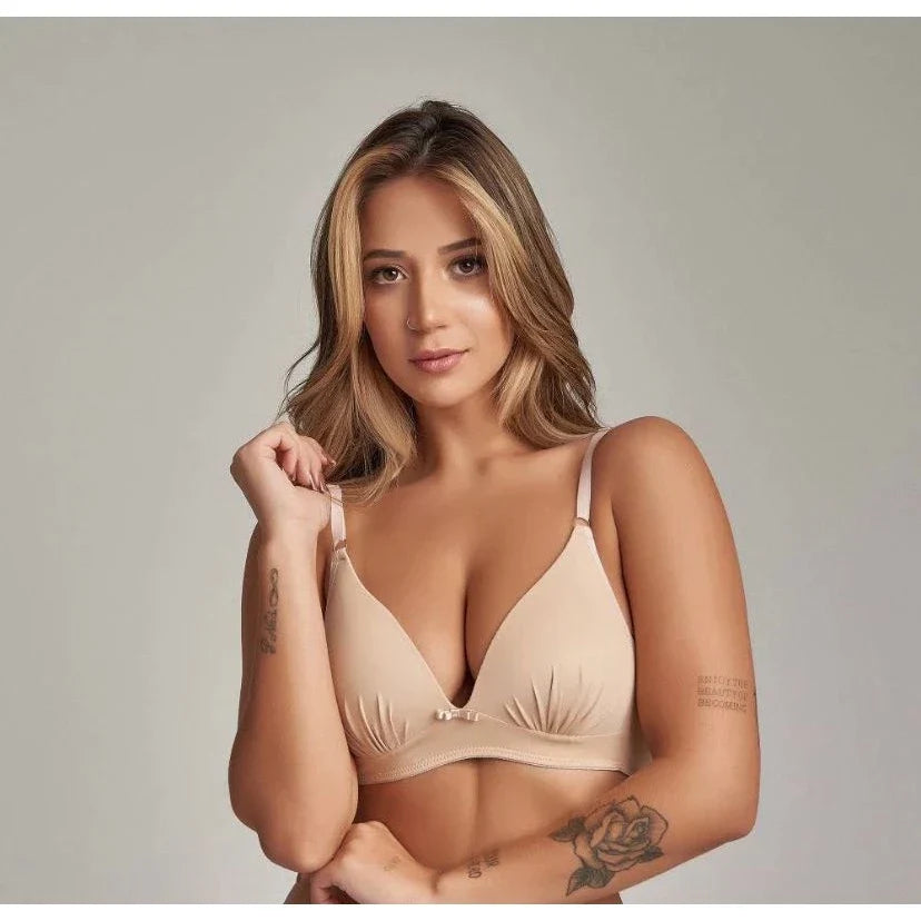 Não possui aro, com isso, não há risco de incomodar ou machucar ao usar o sutiã.
